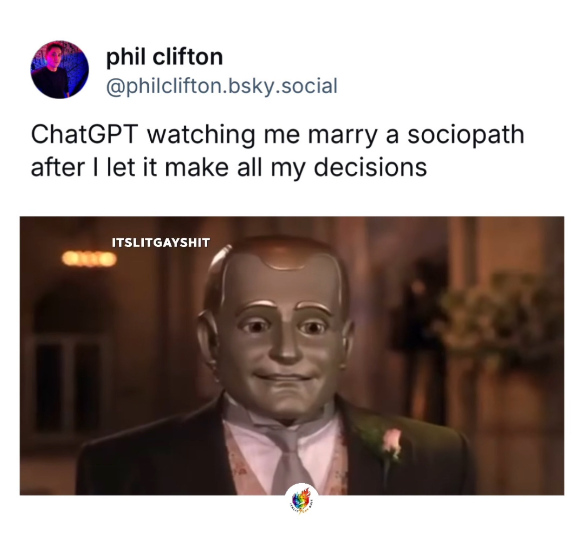 If you understand how AI works, how it can be leveraged and you have the skills to use it wisely, then it’s a great tool. If you think it can solve all your problems - especially your interpersonal ones, you need to go and touch some grass.